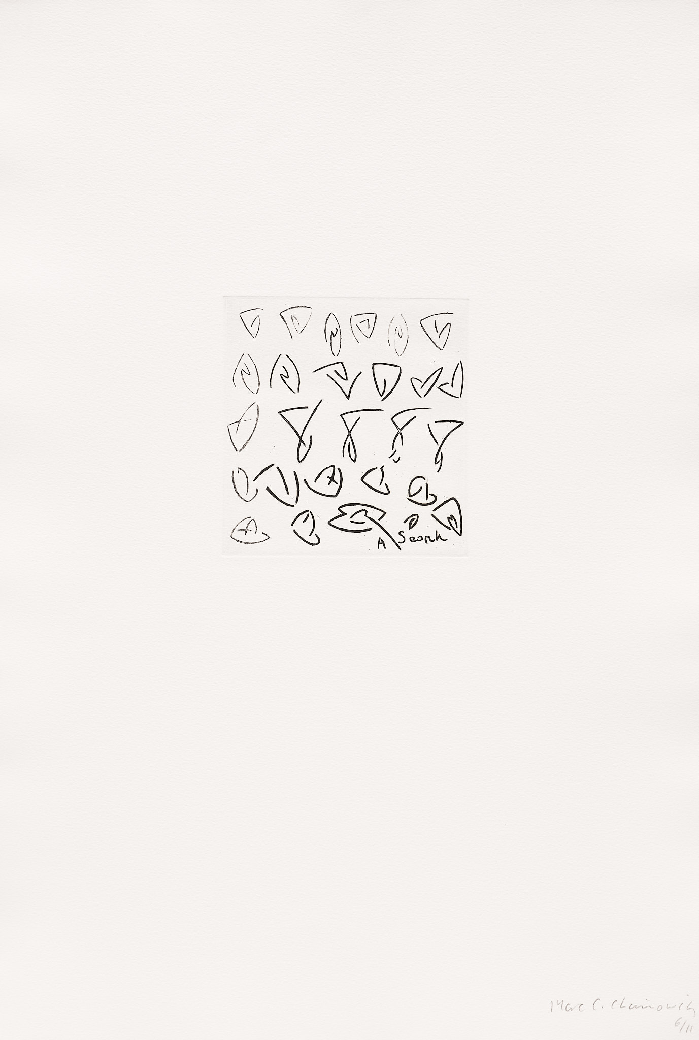 Marc Camille Chaimowicz, A Search, eau-forte, aquatinte, vernis mou, roulette sur papier Arches 250 g/m2, 56 × 37,5 cm, 11 exemplaires, 2 e.a. et 2 H.C., numérotés et signés. Edition du Centre genevois de gravure contemporaine, Genève, 1986.